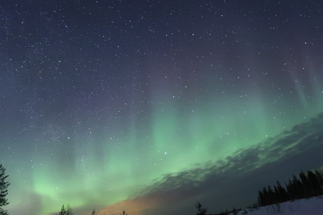 Revontulet siis näyttäisivät loistavan poissaolollaan ainakin Pohjois-Lapin eteläpuolella. Viimeisenä yönä (12./13.) revontulet mahdollisuus Lapissa on kohtuullinen, mutta etelämmäksi tämä muutos ei tuo revontulia.
